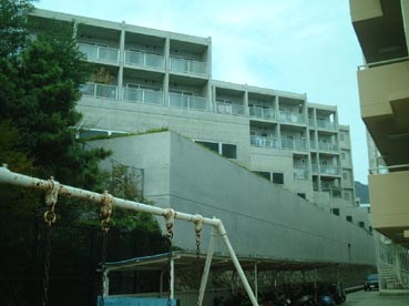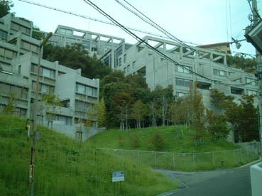 | すでに斜面に立っていません。神戸湾側の向いてない状態です(右側の建物は)ただ、左側の建物からは神戸湾がとてもキレイに見える。上の写真のレベルよりかなりここのレベルは上がっている為に遠くまで見渡せる感じです。(ちなみにこの建物は2期の上に建てられています) | |