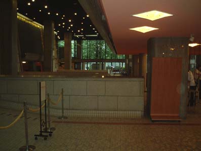まあ、想像通りの空間ですね!正面のレストランの下が劇場の入口になっていますが、低すぎます。大空間から低くなりまた広げるみたいな空間構成は結構好きなんですが、極端すぎるし見たままなんで、なにかしっくりきませんでした。 |